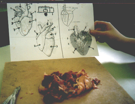 van Ashkan en Bart in det-shirts en bij bio tijdens de onleding van een schapenhart.